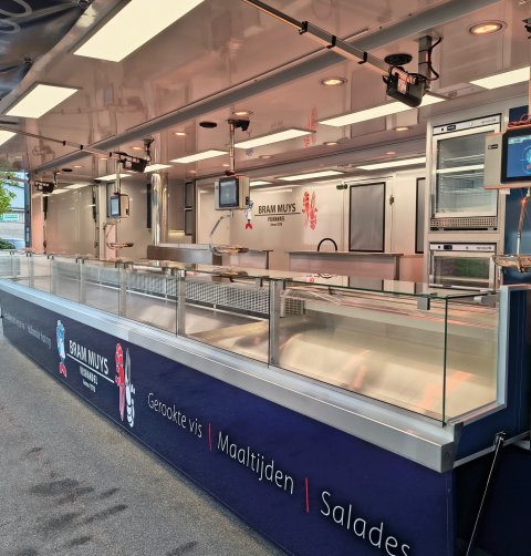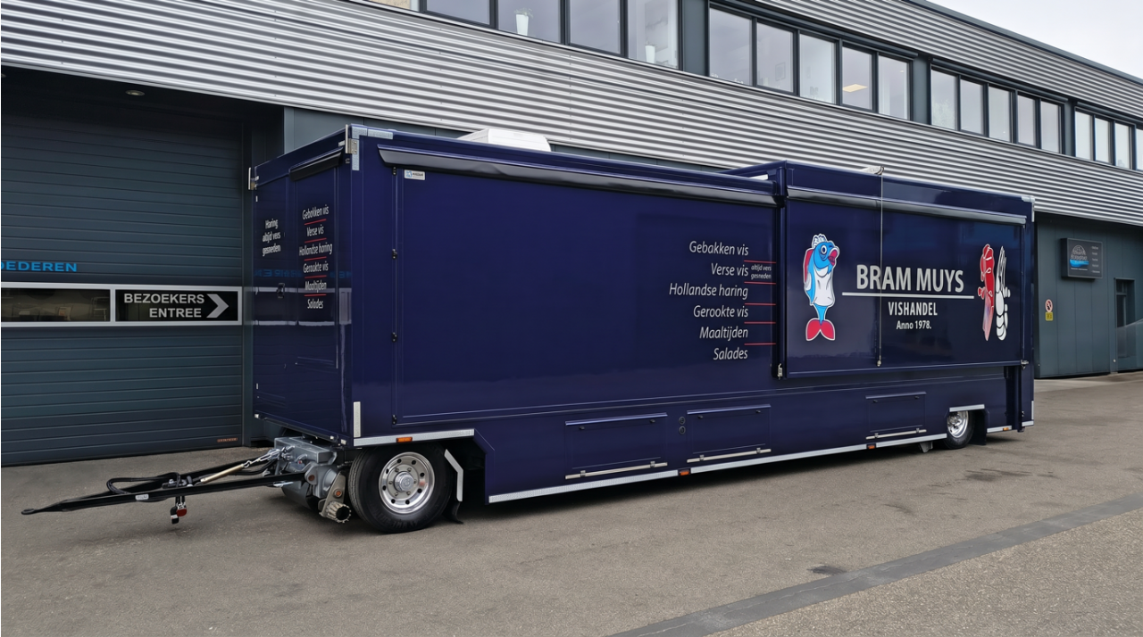 Die Flex-line ist ebenfalls ein neuer, voll ausgestatteter Verkaufswagen, der flexibel mit Modulen wie beispielsweise einer Zeichentafel erweitert werden kann. Diese Serie entstand, weil wir festgestellt haben, dass einige Aspekte für viele Unternehmen relevant sind. Diese Aspekte waren bereits von uns vollständig entwickelt. Daher handelt es sich um hochentwickelte und ausgiebig getestete Verkaufswagen.