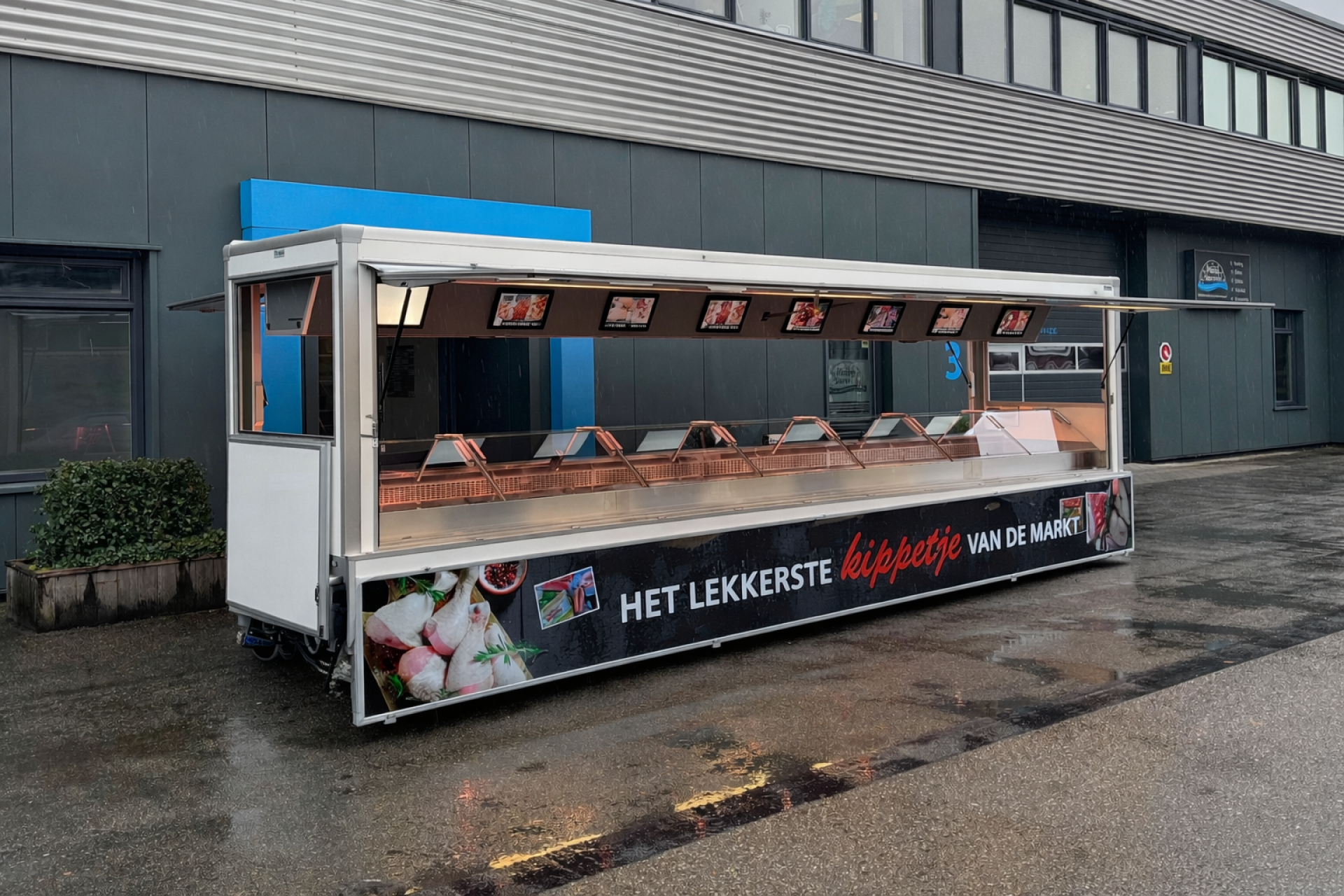 Die Flex-line ist unsere Serie von Standardverkaufswagen. Dabei handelt es sich um neue Wagen, die Sie sich aus Modulen selbst zusammenstellen können. Diese Serie ist entstanden, weil wir festgestellt haben, dass es Dinge gibt, die bei vielen Unternehmern gleich sind. Dinge, die wir schon einmal komplett durchdacht haben. Es handelt sich also um Verkaufsfahrzeuge, die ausgiebig entwickelt und getestet wurden.